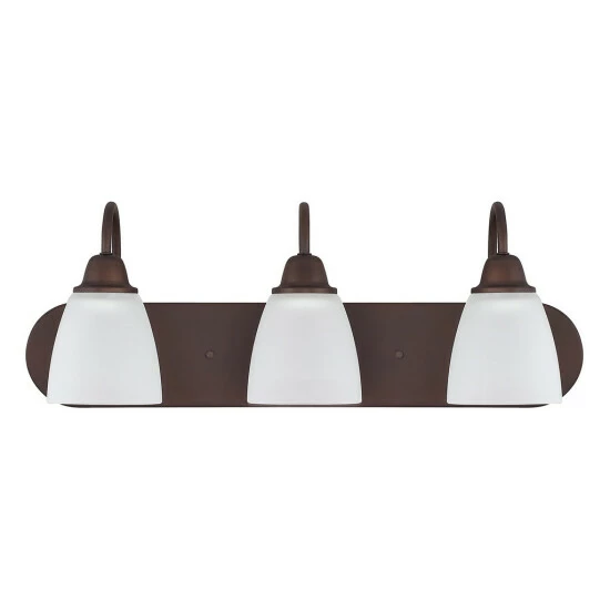 This 3-light bath/vanity fixture from the Trenton collection features a bronze finish that will complement many transitional decors. The acid washed glass shades soften the light to create a warm ambiance to any space. Dimensions: 8.5 inches high x 24 inches wide x 7.75 inches deep. Capital Lighting is a family owned business just outside Atlanta, Georgia. We pride ourselves by delivering high quality products at affordable pricing. Beginning with design concepts from popular home fashions, we transform our ideas into lighting fixtures that blend timeless beauty with today’s styling. From casting and forging to the hand painted finishes and fine details we strive to make our products the finest in the industry.