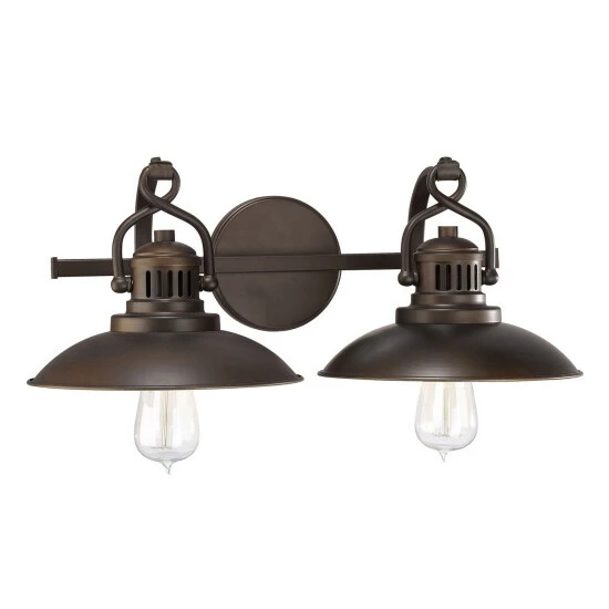 Bring retro style to your home with this two-light vanity featuring a burnished bronze finish that gives your decor a touch of casual elegance. The open bulb design provides ample illumination, while the vintage styling of this retro vanity evokes the feeling of days gone by and provides a distinctive finishing touch to your remodeling project.