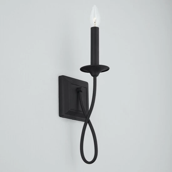The 1-light wall sconce features playful characteristics like the candlestick loop detail complements the airy and light silhouette.
