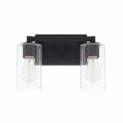 Wholesale 👏 Capital Lighting Clint 2-light Black Iron Bath/ Vanity Fixture W/ Clear Water Glass ❤️