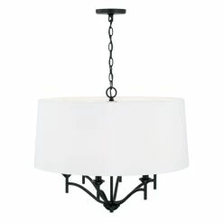 Discount 🎁 Capital Lighting Peyton 6-light Matte Black Drum Pendant W/ White Fabric Shade 🛒