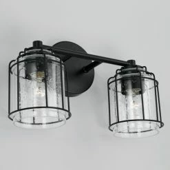 New ⭐ Capital Lighting Harmon Matte Black Bath/ Vanity Fixture W/ Clear Seeded Glass & Metal Cage 🔥